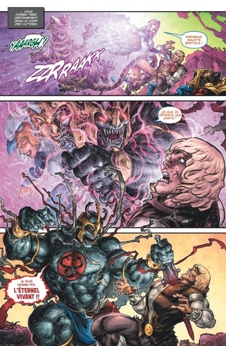 Sur Eternia, un héros légendaire connu sous le nom de Prince Adam, ou Musclor l'homme le plus fort du monde, exploite de pouvoir du crâne ancestral pour combattre les forces maléfiques de Skeletor, son ennemi le plus redoutable. Mais, à plusieurs dimensions de là, une nouvelle menace se profile : Mumm-Ra, l'antique momie au service des Anciens Esprits du Mal cherche à récupérer la puissante épée de Lion-O, roi des Cosmocats. Les deux héros parviendront-ils à dépasser leurs rivalités et à s'unir pour la survie de leurs deux mondes ? Les Maîtres de l'Univers - Cosmocats réunit deux séries de dessins animés chères à tout enfant né dans les années 1960. Destinées valoriser leur ligne de jouets ces licences ont cependant dépassé leur objectif premier en alimentant nos imaginaires d'univers mêlant dans une étrange cohérence la S-F aux codes de la fantasy, de génériques inoubliables mais aussi de combats à l'épée contre des méchants parfais plus stupides que dangereux. Associer les rescapés de Thundera aux héros d'Eternia n'avait rien d'une évidence et, pourtant, au terme de cette lecture, il était écrit que Musclor et Starlion, et peut-être plus encore Skeleton et Mumm-Ra, étaient appelés à se rencontrer.