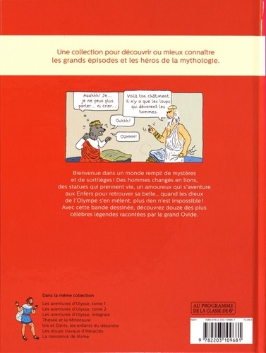 Bienvenue dans un monde rempli de mystères et de sortilèges ! Des hommes changés en lions, des statues qui prennent vie, un amoureux qui s'aventure aux Enfers pour retrouver sa belle... quand les dieux de l'Olympe s'en mêlent, plus rien n'est impossible ! Avec cette bande dessinée, découvrez douez des plus célèbres légendes racontées par le grand Ovide.