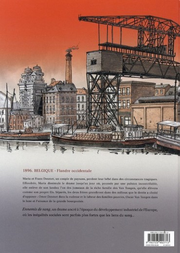 Belgique, Flandre occidentale, 1896. Maria et Frans Desmet, un couple de paysans, perdent leur bébé dans des circonstances tragiques. Effondrée, Maria dissimule le drame jusqu’au jour où, poussée par une pulsion incontrôlable, elle enlève de son landau l’un des jumeaux de la riche famille des Van Tongen, qu’elle élèvera comme son propre fils. Séparés, les deux frères grandiront dans des milieux que le destin a choisi d’opposer : Omer Desmet dans la rudesse et le labeur des familles pauvres, Oscar Van Tongen dans le luxe et l’aisance de la grande bourgeoisie. Ennemis de sang est un drame ancré à l’époque du développement industriel de l’Europe, où les inégalités sociales sont parfois plus fortes que les liens du sang.