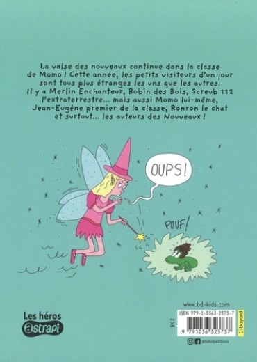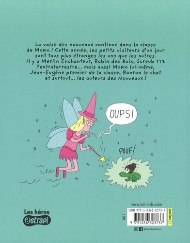 La valse des nouveaux continue dans la classe de Momo ! Cette année, les petits visiteurs d'un jour sont tous plus étranges les uns que les autres. Il y a Merlin Enchanteur, Robin des Bois, Screub 112 l'extraterrestre... mais aussi Momo lui-même, Jean-Eugène premier de la classe, Ronron le chat et surtout... les auteurs des Nouveaux ! Ce deuxième album toujours aussi pétillant et amusant promet de drôles de rencontres !
