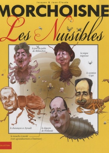 En véritable entomologiste, Jean-Claude Morchoisne transforme les politiques en insectes... nuisibles. Ils sont velus, ont des pattes crochues, des dards pointus, des yeux globuleux... Les mots font mouche, un festival de blagues piquantes ! Vous en aviez rêvé, Morchoisne l'a dessiné ! Tout le petit monde des "cafards" de la politique réduit à la taille d'insectes minuscules. La teigne teigneuse (Martine Aubry), le sarkopte de la gale (autrement dit la tique), le cloporte de Hollande, la punaise verte puante des bois (Eva Joly), le bourdon et son fameux air du "viol du bourdon" (est-il besoin de le nommer ?), la mouche à boeuf - communément appelée la mouche à merde (Marine Le Pen), la puce de l'homme (Borloo), Bayrou l'insecticide... Après des élections bien agitées - chacun a volé dans tous les sens en faisant beaucoup de bruit - , certains ont grillé leurs ailes à la lueur des réverbères, d'autres ont pris des murs aveuglés par les rayons du soleil, d'autres, encore, sont restés collés dans les pièges à guêpes ou sont morts noyés dans des fonds de verre de soda... Les voilà prêts à repartir pour une nouvelle année. La politique, mieux vaut l'avoir en caricature ! L'album comique de la fin d'année, par un maître du genre.