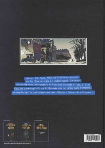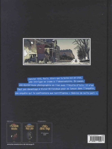 Janvier 1910, Paris. Alors que la Seine est en crue, une intrigue se trame à l'observatoire. En cause, une mystérieuse photographie en lien avec l'étoile d'Isis. Il n'en faut pas davantage à Victor Billetdoux pour se lancer dans l'enquête, une enquête qui le confrontera aux terrifiantes "Ombres de nulle part".