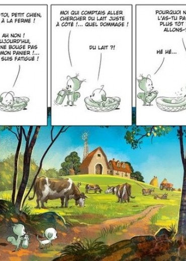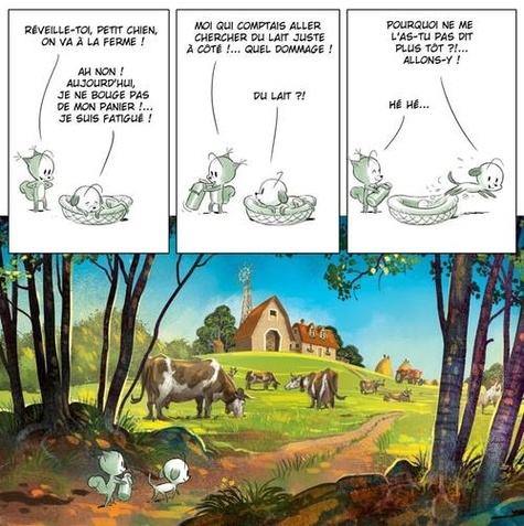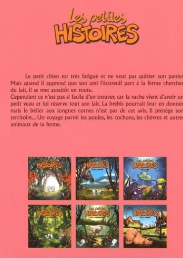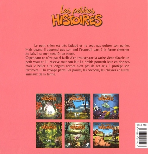 Le petit chien est très fatigué et ne veut pas quitter son panier. Mais quand il apprend que son ami l'écureuil part à la ferme chercher du lait, il se met aussitôt en route. Evidemment, trouver du lait n'est pas chose facile : la vache vient d'avoir un petit veau et lui réserve tout ce qu'elle a. La brebis pourrait leur en donner, mais le bélier aux longues cornes n'est pas de cet avis. Il protège son territoire. Quant à la chèvre, elle se promène dans les prairies à la recherche des meilleures heures... Un voyage au milieu des poules, des cochons et autres animaux de la ferme...