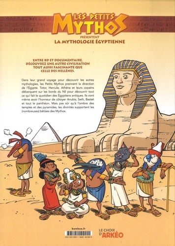 Dans leur grand voyage pour découvrir les autres mythologies, les Petits Mythos prennent la direction de l'Egypte. Totor, Hercule, Athéna et leurs copains débarquent sur les bords du Nil pour découvrir tout ce qui fait le quotidien des Egyptiens antiques. Ils vont même avoir l'honneur de côtoyer Anubis, Seth, Bastet et tout le panthéon. Mais pas sûr qu'à l'ombre des temples et des pyramides, les divinités supportent les (nombreuses) bêtises des Mythos.