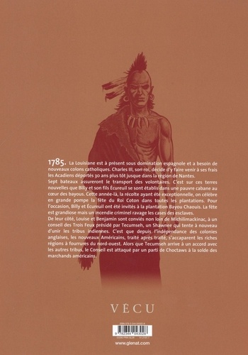1785. La Louisiane est à présent sous domination espagnole et a besoin de nouveaux colons catholiques. Charles III, son roi, décide d'y faire venir à ses frais les Acadiens déportés 30 ans plus tôt jusque dans la région de Nantes. Sept bateaux assureront le transport des volontaires. C'est sur ces terres nouvelles que Billy et son fils Ecureuil se sont établis dans une pauvre cabane au coeur des bayous. Cette année-là, la récolte ayant été exceptionnelle, on célèbre en grande pompe la fête du Roi Coton dans toutes les plantations. Pour l'occasion, Billy et Ecureuil ont été invités à la plantation Bayou Chaouis. La fête est grandiose mais un incendie criminel ravage les cases des esclaves. De leur côté, Louise et Benjamin sont conviés non loin de Michilimackinac, à un conseil des Trois Feux présidé par Tecumseh, un Shawnee qui tente à nouveau d'unir les tribus indiennes. C'est que depuis l'indépendance des colonies anglaises, les nouveaux Américains, traité après traité, s'accaparent les riches régions à fourrures du nord-ouest. Alors que Tecumseh arrive à un accord avec les autres tribus, le Conseil est attaqué par un parti de Choctaws à la solde des marchands américains.