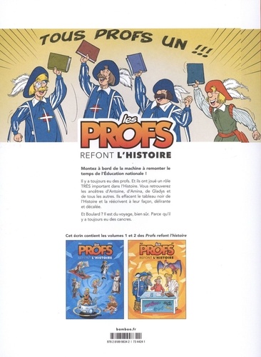 Montez à bord de la machine à remonter le temps de l'Education nationale ! Il y a toujours eu des profs. Et ils ont joué un rôle très important dans l'Histoire. Vous retrouverez les ancêtres d'Antoine, d'Amine, de Gladys et de tous les autres. Ils effacent le tableau noir de l'Histoire et la réécrivent à leur façon, délirante et décalée. Et Boulard ? Il est du voyage, bien sir. Parce qu'il y a toujours eu des cancres.