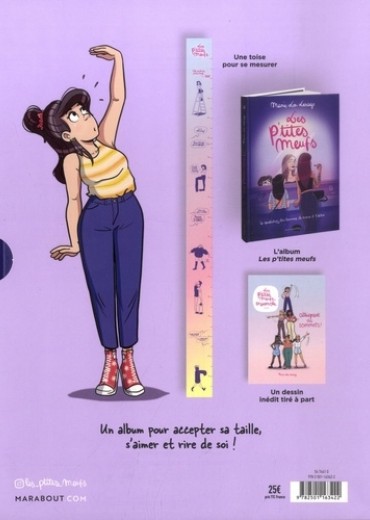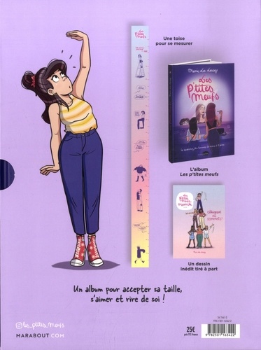 Un coffret collector contenant : -La BD -Une toise pour se mesurer -Un dessin inédit tiré à part Schtroumpf, microbe, nain de jardin, minimoys, p'tite tête... autant de qualificatifs entendus au quotidien par les femmes de petite taille. Marie-Lou, 25 ans, 1m53 a tout entendu de la part de ses amis, son mec, sa famille et ses collègues... des surnoms ou sobriquets qui se veulent gentils mais qui lui rappellent qu'elle n'existe que dans UNE SEULE catégorie... Celle des petites meufs ! Devenue "spécialiste de la petite taille" Marie-Lou traite de tous les sujets, des fashion faux pas, au plaisir de s'habiller au rayon enfant, les inconvénients ou les avantages de voyager, conduire ou aller au cinéma. Elle divulgue aussi des secrets pratiques et croque des scènes drôlissimes. Marie-Lou assume sa taille même si elle en subit les aléas quotidiens. Elle n'est jamais à court d'idées pour se faciliter la vie. Susceptible, elle a du répondant face ceux qui se moquent d'elle. Sa relation amoureuse avec son géant Lucas donne lieu à des anecdotes cocasses.