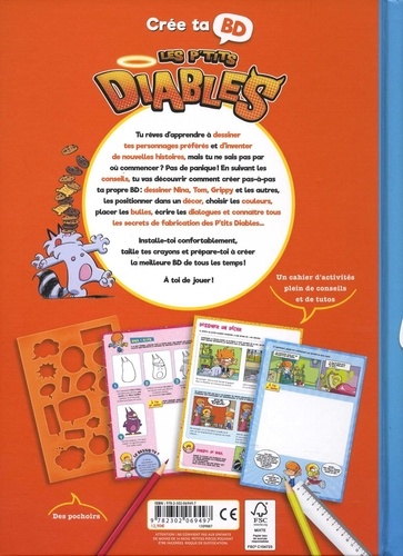 Pile pour les vacances d'été, voici une nouvelle collection : CRéE TA BD ! Un cahier d'activités plein de conseils pour apprendre à dessiner et imaginer des histoires avec ses héros préférés. Contenu très riche : conseils, pas-à -pas détaillés et dessins inédits. Apprendre à dessiner ses héros préférés et imaginer des histoires, accompagné d'anecdotes et de secrets d'Olivier Dutto ! Le cahier contient : des pas-à -pas de dessin (Nina, Tom, Grippy, leurs copains, leurs parents...), un contenu évolutif (apprendre à dessiner les personnages, puis un décor, une scène, et enfin une planche), des idées pour imaginer un scénario, des tutoriels avec des jeux pour s'entraîner (qu'est-ce que le lettrage ? les onomatopées ? l'encrage ? ), les secrets de fabrication d'Olivier Dutto, de jolis pochoirs en PVC coloré, encartés dans la spirale, qui permettent de s'entraîner à tracer des bulles.