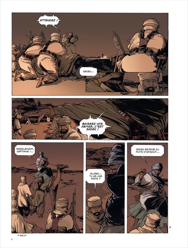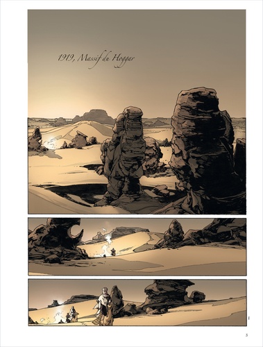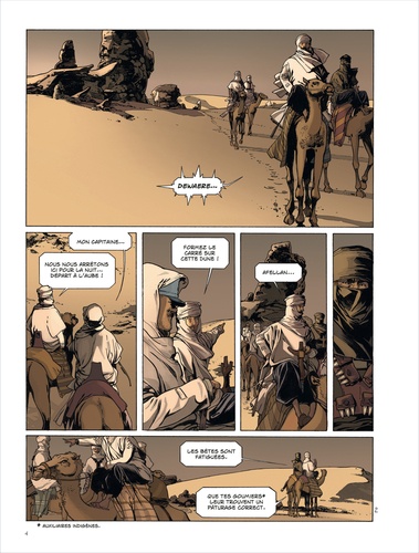 1er tome des Quatre Coins du monde, un diptyque flamboyant de Labiano qui revisite un épisode méconnu de l’histoire de France. Le 1er épisode des Quatre Coins du monde commence au début du XXe siècle, alors que la vielle Europe sommeille, ne se doutant pas encore qu’elle serait bientôt dévastée par une guerre terrible. Certains militaires français sont envoyés au fin fond du Sahara pour devenir «méharistes». Ces hommes, qui ne connaissent que la verdoyante campagne française, se retrouvent à des milliers de kilomètres de chez eux, à dos de chameau, entourés de Touaregs, à vivre une aventure à nulle autre pareille. Les Quatre Coins du monde : quand un grand dessinateur se fait auteur accompli pour une BD qui retrouve le souffle des grandes épopées et des plus belles histoires humaines.