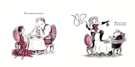 Point de déroulés étape par étape et autres making-of en cuisine ! Place aux couples qui les dégustent, par exemple un soir de Saint-Valentin. Leur mise en situation en dit long sur leur caractère et leur vie amoureuse ou libertine, à deux ou à plusieurs... Au fil des pages, la déclinaison des recettes devient un tableau des mille et une façons de partager un repas et surtout, de s'aimer ou se détester, se séduire ou s'attraper, se croquer ou se déchirer ! Pas de doute, l'Amour, c'est fou !