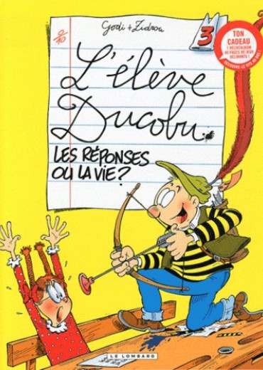 La vie à l'école n'est pas un long fleuve tranquille. Pour certains, l'année scolaire est même plutôt celle de tous les dangers ! Que serait une classe sans son cancre ? Un peu comme un potage sans sel. Du sel, l'élève Ducobu en apporte assurément dans le quotidien de ses copains de classe. Avec lui, les cours ne manquent pas de saveur et sont de perpétuelles récréations. Bien sûr, il y a toujours Léonie, la surdouée à qui on ne la fait pas et pour qui, le savoir ne se partage pas. Bien sûr, il y a toujours l'instituteur dont l'index s'avère plus menaçant que jamais... Notre sympathique cancre a cependant fait son choix. Les réponses ou la vie ?