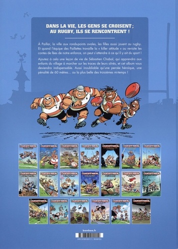 A Paillar, la ville aux ronds-points ovales, les filles aussi jouent au rugby. Et quand l'équipe des Paillettes travaille la "killer attitude" ou revisite les contes de fées de notre enfance, on peut s'attendre à ce qu'il y ait du sport ! Ajoutez à cela une leçon de vie de Sébastien Chabal, qui apprendra aux enfants du village à marcher sur les traces de leurs aînés, et cet album vous deviendra indispensable. Aussi inoubliable qu'une percée héroïque, une pénalité de 60 mètres... ou la plus belle des troisièmes mi-temps !