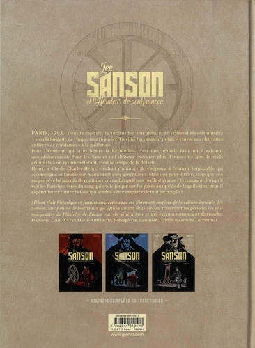 La mort est leur métier Les Sanson sont une famille de bourreaux qui a officié entre le XVIIe et le XIXe siècle. Ils exécutèrent notamment Cartouche, Robert-François Damiens, Louis XVI et Marie-Antoinette, Robespierre, Lavoisier, Charlotte Corday, Danton ou encore Lacenaire. S'inspirant de cette funeste dynastie, Patrick Mallet livre un récit haletant comme une série TV, mêlant habilement la Grande Histoire au fantastique pour manipuler le lecteur tel l'Amateur de Souffrance avec ses bourreaux. Ce troisième volume, consacré à Charles-Henri Sanson, favorable à l'adoption de la guillotine et surtout connu pour avoir décapité Louis XVI et Marie-Antoinette, verra la conclusion du combat de la dynastie contre le terrifiant Amateur de souffrances.