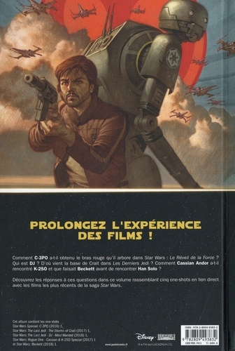 Comment C-3PO a-t-il obtenu le bras rouge qu'on lui découvre dans Le Réveil de la Force ? Comment se sont rencontrés Cassian Andor et K-2SO, deux des héros de Rogue One ? Quand Luke et Leia ont-ils foulé le sol de la planète Crait, théâtre du dernier affrontement des Derniers Jedi ? Qui est réellement DJ, le personnage joué par Benicio Del Toro dans ce même film ? D'où vient Tobias Beckett, l'homme qui a tout appris à Han Solo dans le film qui lui était consacré ? Toutes les réponses sont dans cet album. Ces cinq one-shots consacrant des personnages parmi les plus connus de l'univers Star Wars, ont précédemment été publiés dans les softcovers STAR WARS. Ces histoires sont maintenant disponibles en librairie en format cartonné.
