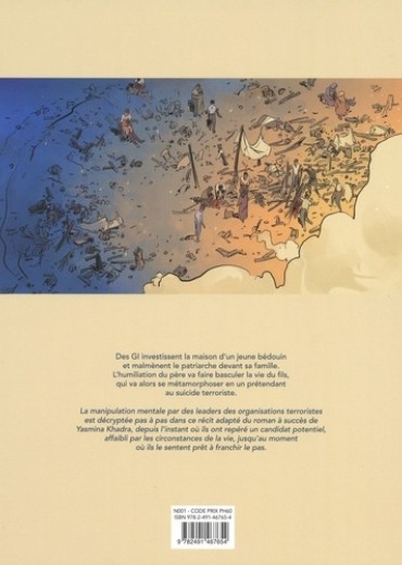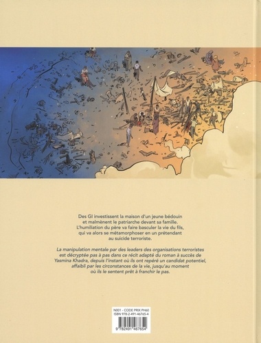Un jeune Bédouin vit paisiblement avec ses parents quand les GI investissent leur modeste maison et malmènent le patriarche devant sa famille. Lhumiliation du père va faire basculer la vie du fils, qui va alors se métamorphoser en un prétendant au suicide terroriste. Le récit se déroule durant l'occupation de l'Irak par les troupes américaines : massacres, humiliations, tortures morales et physiques... Un jeune Bédouin, habitant le village de Kafr Karam, vit paisiblement avec ses parents. Quand les GI investissent leur modeste maison et malmènent le patriarche devant sa famille, plus que le sang qu'il a déjà vu couler à plusieurs reprises, c'est l'humiliation de son propre père qui va faire basculer la vie du fils de cette famille. Le jeune Bédouin va alors se métamorphoser en un prétendant au suicide terroriste. Le récit décrypte pas à pas la démarche de manipulation mentale des leaders des organisations terroristes, depuis l'instant où ils ont repéré un candidat potentiel, affaibli par les circonstances de la vie, jusqu'au moment où ils le sentent prêt à franchir le pas. Après " Les Déracinés ", Winoc renoue avec un graphisme précis, documenté, pour donner à ses personnages le degré de réalisme nécessaire à l'empathie sans tomber dans la description photographique, trouvant le juste équilibre grâce - ; notamment - ; à sa palette colorée qui laisse la part belle au lumières orientales.