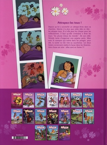 Les deux tornades font souffler un vent de folie sur la BD ! Depuis qu'on a accroché un attrape-rêve dans sa chambre, Marine n'a plus que cette idée en tête : les attraper tous. Et si elle peut les choper pour les collectionner, il faut qu'elle s'entraîne à rêver les trucs les plus mieux du monde. De son côté, Wendy tente d'organiser une pyjama party. Mais avec le crampon qui traîne dans les parages, pour elle, la soirée va vite virer au cauchemar. Les deux Sisters reviennent mettre le bazar dans les librairies. Une chose est sûre : elles sont en forme !!!