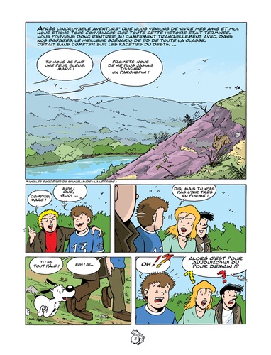 Après l'incroyable aventure que nous venions de vivre mes amis et moi, nous étions tous convaincus que toute cette histoire était terminée. Nous pouvions donc rentrer au campement tranquillement avec, dans nos bagages, le meilleur scénario de bande dessinée de toute la classe. C'était sans compter sur les facéties du destin...