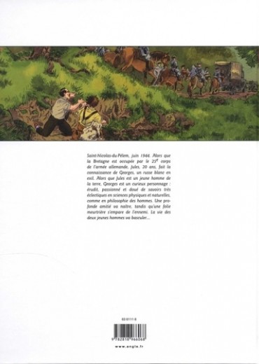 L'Homme ne meurt pas. Un jour, il cesse simplement de s'émerveiller. Juin 1944. Alors que la Bretagne est occupée par le 25e corps de l'armée allemande, Jules, 20 ans, fait la connaissance de Georges, un russe blanc en exil. Alors que Jules est un jeune homme de la terre, Georges est un curieux personnage : érudit, passionné et doué de savoirs très éclectiques en sciences physiques et naturelles, comme en philosophie des hommes. De cette rencontre improbable née une amitié profonde, basée sur l'échange, dans un contexte historique qui ne la prendra pas sous l'aile de la bienveillance... Loin du registre humoristique qui caractérise son travail habituel, Gérard Cousseau - alias Gégé - offre ici une histoire vraie, touchante et tragique, mise en couleur directe par le jeune et talentueux Cuvillier pour son premier album...