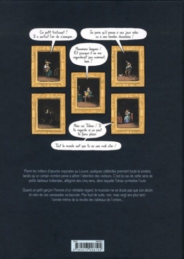 Parmi les oeuvres exposées au Louvre, certaines n'attirent l'attention d'aucun visiteur. C'est le cas de cette série de petites toiles, allégorie des cinq sens, dans laquelle Tobias symbolise l'ouïe. Quand un petit garçon l'honore d'un véritable regard, le musicien ne se doute pas que cet écolier va bouleverser les choses deux décennies plus tard, l'année même de la révolte des tableaux de l'ombre...