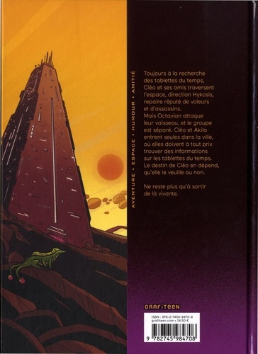 Cléopâtre et ses amis pensent avoir découvert le secret de son arrivée à l'académie Yasiro : deux tablettes temporelles permettraient à la jeune fille de passer de l'Egypte antique au système Ailuros, un bond de 6 000 ans ! Mais quand Khensu, Cléo, Akila, Brian et Zaïd se rendent sur une planète hostile pour se renseigner sur ces tablettes, l'impitoyable Octavien retrouve leur trace...