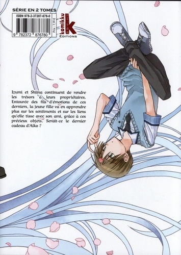 Une jeune sorcière manipule les fils du destin pour rendre le bonheur à chacun ! Série en deux tomes par l'auteur de L'Enfant du Dragon fantôme ! Izumi et Shiina continuent de rendre les trésors à leurs propriétaires. Entourée des fils d'émotions de ces derniers, la jeune fille va en apprendre plus sur les sentiments et sur les liens qu'elle tisse avec son ami, grâce à ces précieux objets. Serait-ce le dernier cadeau d'Aiko ?