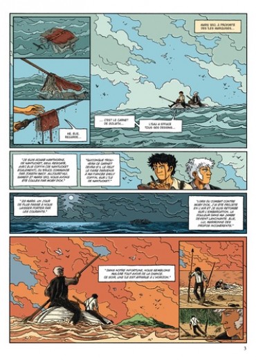 Patrick Mallet invente le préquel de Moby Dick, ou la genèse d'une obsession destructrice et d'un duel mythique. Depuis son île de Nantucket, le jeune Achab a vu partir en mer tous les hommes de sa famille. Son père ainsi que l'un de ses frères n'en reviendront jamais : ils ont été emportés par Moby Dick, le terrible cachalot blanc qui hante les cauchemars de ceux qui l'ont aperçu. L'adolescent jure de se venger, et scelle ainsi son destin. Est-ce Achab qui poursuit Moby Dick ou Moby Dick qui s'acharne sur Achab et sa famille ? Achab provoque-t-il seul son destin en écoutant sa folie ou est-il bel et bien frappé par une malédiction ? Peut-il réellement y avoir un vainqueur ? Le grand mérite de l'auteur est de laisser la liberté au lecteur de répondre à ces questions. Il est cependant certain que les évènements qui jonchent le destin d'Achab tissent une toile qui se resserre inexorablement autour de lui et Moby Dick... Dans ce troisième tome, Achab est rescapé du naufrage du Bruce avec son ami Elie. Capturés par des indigènes, ils vivront quelques années sur les îles Marquises. Cet exil et son difficile retour achèveront de faire de lui un homme, fier capitaine de baleinier. Plus de sept années passent et malgré les tendres liens qui le rattachent à la terre et qui lui donneront un enfant nommé Ishmaël (le narrateur de Moby Dick...), les pensées d'Achab sont toujours plus tournées vers l'océan, là où il pourra enfin se venger et se débarrasser de la bête qu'il juge responsable de ses malheurs...