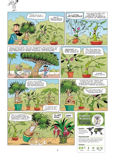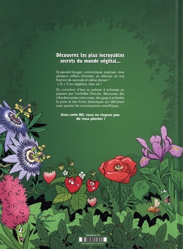 Découvrez les plus incroyables secrets du monde végétal... Ils peuvent bouger, communiquer, exploser, vivre plusieurs milliers d'années, se refermer en une fraction de seconde et même danser ! "Ils" ? Les végétaux, bien sûr ! Du cornichon d'âne au palmier à échasses en passant par l'orchidée Dracula, découvrez des infos étonnantes mais vraies, des gags à se fendre la poire et des fiches didactiques qui défrichent avec passion les connaissances scientifiques... Avec cette BD, vous ne risquez pas de vous planter !