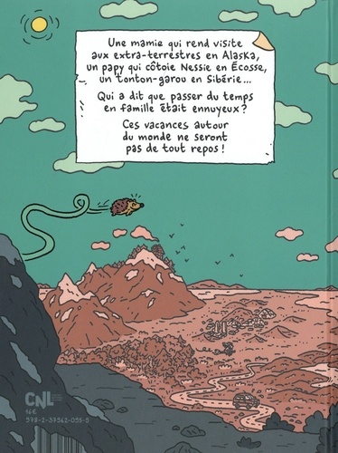 Deux soeurs sont envoyées par leurs mamans faire le tour du monde pour les vacances d'été. Dans plusieurs pays, elles vont faire la connaissance des membres de leur bien étrange famille. Une mamie qui rend visite aux extra-terrestres en Alaska, un papy qui dialogue avec Nessy en Ecosse, un tonton garou en Sibérie... mais que vont-elles découvrir sur leurs mamans en rentrant ? ! Une bande dessinée composée de sept aventures fantastiques complètement déjantées, un voyage à la rencontre d'une famille extraordinaire et haute en couleurs !