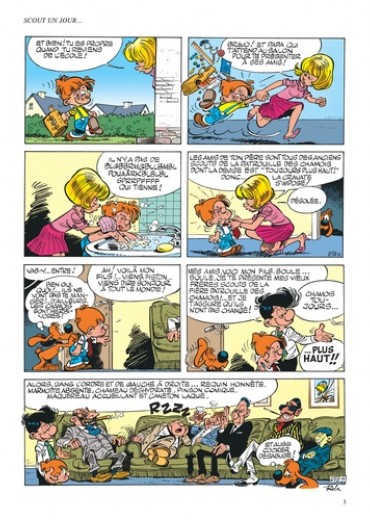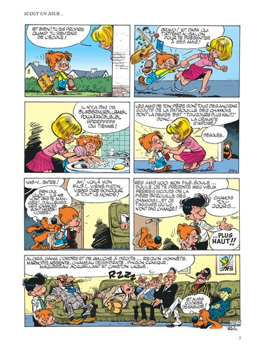 Boule est un petit garçon facétieux qui vit entre sa mère (exemplaire), son père ("bricoleur" et gaffeur) et Bill (gentil cocker). Cette bande typiquement familiale a débuté dans les pages de 'SPIROU' en 1959. Si Boule apparaît dans tous les gags, Bill lui ravit rapidement la vedette. Ce chien farfelu apprécie bien sûr les os, les jolies chiennes, sa copine la tortue, ses amis les oiseaux et son jeune maître (Boule). De son trait rond, et jovial, l'auteur décrit par une suite de gags les aventures quotidiennes de cette famille particulièrement sympathique qui vit dans une maison où il fait bon vivre. L'environnement de cette famille est tout de suite identifiable : un pavillon coquet, un jardin et une voiture (la fameuse 2CV rouge) ! Gros succès de l'édition, cette série avoisine les 1000 gags et dépasse les 7 millions d'exemplaires vendus. Roba a quitté les éditions Dupuis pour Dargaud en 1987 : les 24 premiers tomes sont donc édités chez Dupuis.