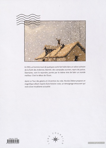 Dans son nouveau one shot, Nicolas Debon s'inspire de l'histoire vraie d'une communauté anarchiste installée dans les Ardennes en 1903. Fonctionnant sur le principe de liberté et sur les préceptes libertaires, la communauté de L'Essai illustre à merveille l'espoir d'un modèle de société différent et exempt de toute autorité, dans une France plongée dans la misère. Un récit historique poignant sur un épisode méconnu de notre histoire et mis en images par un auteur au talent hors du commun.