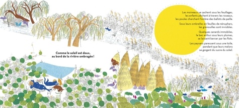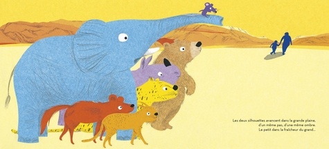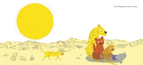 Comme le soleil est doux au bord de la rivière ombragée ! Comme le soleil est rude dans les grandes plaines arides ! Les animaux, irrités par la chaleur, se disputent la moindre parcelle d'ombre... jusqu'à ce qu'ils aperçoivent un père marchant avec son fils, le petit dans la fraîcheur du grand. Une idée émerge alors dans l'esprit du chat sauvage...