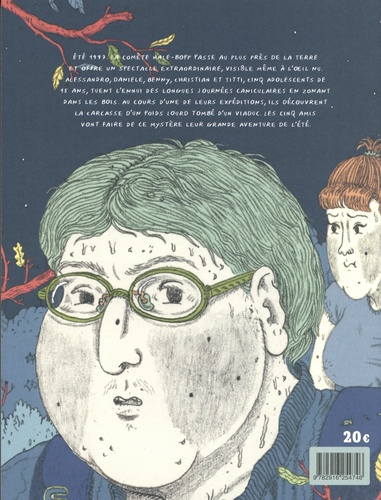 Eté 1997. La comète Hale-Bopp passe au plus près de la Terre et offre un spectacle extraordinaire, visible même à l'oeil nu. Alessandro, Daniele, Benny, Christian et Titti, cinq adolescents de 15 ans, tuent l'ennui des longues journées caniculaires en zonant dans les bois. Au cours d'une de leurs expéditions, ils découvrent la carcasse d'un poids lourd tombé du viaduc. En s'approchant de plus près, ils s'aperçoivent que le camion renversé abrite un camp de fortune. Sous l'amas de tôles en acier : un matelas, des cannettes de bières vides, une casserole sale sur un réchaud... et un vieux chien aveugle attaché à une corde qui monte la garde. Qui peut bien vivre ici ? Est-ce le chauffeur du camion ? Comment a-t'il survécu à une telle chute ? Les cinq amis vont faire de ce mystère leur grande aventure de l'été. Avec L'ETE DERNIER, Paolo Cattaneo décrit avec une précision incroyable le quotidien et les émois d'une bande d'ados dans l'Italie des années 90. Ses personnages joufflus à tête de poire sont dessinés avec un soucis du détail quasi maniaque : on peut apercevoir les boutons, les points noirs, les fronts gras sous les franges, les bagues dentaires en métal et les premiers poils de moustache naissante. Il en va de même pour les décors minutieusement campés qui apportent un réalisme troublant à ce récit nostalgique aux accents de " Stand by me ".