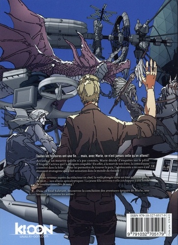 Toutes les histoires ont une fin... mais avec Marie, ce n'est jamais celle qu'on attend ! Accusée d'un meurtre qu'elle n'a pas commis, Marie décide d'enquêter sur le passé d'Angela, l'actrice qui l'a désignée coupable ! En effet, à la mort de son frère, la comédienne a sombré dans la folie... Pour lui permettre de trouver la paix, l'adolescente a recours à un étonnant stratagème qui a fait sensation dans le monde du théâtre ! A peine revenue auprès du rédacteur en chef, la voilà plongée dans un tout nouveau genre de récit... aux allures apocalyptiques ! La jeune fille arrivera-t-elle à échapper à une horde de zombies assoiffés de sang ? Dans ce final haletant, découvrez la conclusion des aventures épiques de Marie, une héroïne pas comme les autres !
