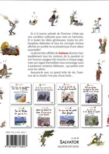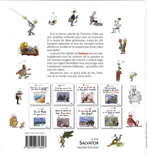 Et si la bonne volonté de l'homme n'était pas une condition suffisante pour vivre en harmonie. Et si toutes les idées généreuses, toutes les philosophies élaborées et tous les concepts moraux affichés en société ne se privaient pas d'une valeur essentielle ? La plume bien affûtée de Guézou dessine impitoyablement tous les contours de la question et son humour ravageur fait mouche à chaque page, mais son regard bienveillant nous encourage aussi à pardonner certaines faiblesses... qui parfois sont aussi les nôtres. Avouons-le avec un grand éclat de rire, l'exercice de la charité n'est pas chose facile...