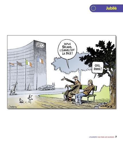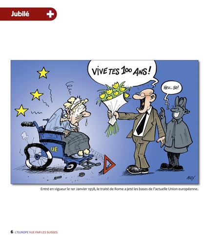 Perdue au milieu des 27 pays qui composent l'Europe, la Suisse indépendante porte un regard averti et souvent caustique sur ses voisins. Au travers des dessins de 14 dessinateurs et dessinatrices de presse suisses romands, retrouvez l'Europe telle qu'elle est vue par les Suisses. De la politique à la crise, en passant par les scandales des affaires en tous genres, découvrez une nouvelle vision caricaturale des 27 étoiles Jaunes qui entourent la croix blanche.