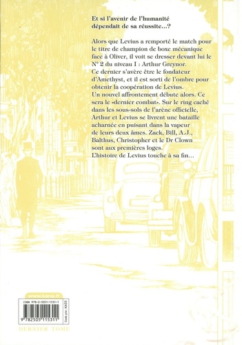 Et si l'avenir de l'humanité dépendait de sa réussite...? Alors que Levius a remporté le match pour le titre de champion de boxe mécanique face à Oliver, il voit se dresser devant lui le N° 2 du niveau I : Arthur Greynor. Ce dernier s'avère être le fondateur d'Amethyst, et il est sorti de l'ombre pour obtenir la coopération de Levius. Un nouvel affrontement débute alors. Ce sera le "dernier combat". Sur le ring caché dans les sous-sols de l'arène officielle, Arthur et Levius se livrent une bataille acharnée en puisant dans la vapeur de leurs deux âmes. Zack, Bill, A.J., Balthus, Christopher et le Dr Clown sont aux premières loges. L'histoire de Levius touche à sa fin...