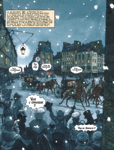 Dans ce dernier de la série historique Double Masque, Jean Dufaux et Martin Jamar multiplient les rebondissements : Bonaparte deviendra-t-il Napoléon ? Dans la nuit qui précède son Sacre, en novembre 1804, les conspirateurs s’affairent. Mais tout se décidera à nouveau dans l’ombre des bas-fonds : l’Écureuil déjoue le complot tandis que la Fourmi, décidé à prendre en main son destin, va à la rencontre de la Berbère. Au matin, la France aura un nouvel Empereur et les cloaques risquent bien d’avoir un nouveau maître…