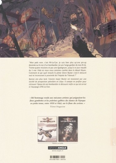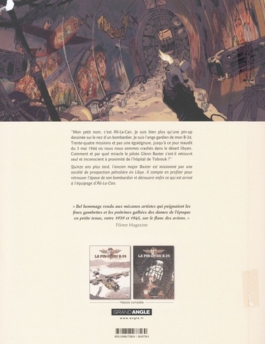 "Mon petit nom. c'est Ali-La-Can. Je suis bien plus qu'une pin-up dessinée sur le nez d'un bombardier. Je suis l'ange gardien de mon B-24. Trente-quatre missions et pas une égratignure, jusqu'à ce jour maudit du 5 mai 1944 où nous nous sommes crashés dans le désert libyen. Comment et par quel miracle le pilote Glenn Baxter s'est-il retrouvé seul et inconscient à proximité de l'hôpital de Tobrouk ? " Quinze ans plus tard, l'ancien major Baxter est missionné par une société de prospection pétrolière en Libye. Il compte en profiter pour retrouver l'épave de son bombardier et découvrir enfin ce qui est arrivé à l'équipage d'Ali-La-Can.