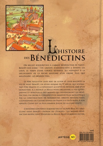 On reçoit aujourd'hui à l'abbaye bénédictine de Saint-Benoît-sur-Loire ! Un groupe d'adolescents a investi les lieux, le temps d'une courte retraite. Ils viennent à la découverte de la riche histoire d'un ordre plus que millénaire : les bénédictins. Le père Augustin leur sert de guide et leur raconte la vie de saint Benoît, un jeune-homme du Ve siècle, qui souhaitait être ermite et a cependant accepté de devenir abbé d'un monastère. Il a rédigé la Règle pour organiser la vie quotidienne et spirituelle des moines qui deviendront les bénédictins, un ordre à l'origine d'un immense élan monastique par la construction de nombreuses abbayes bénédictines, clunisiennes ou cisterciennes en France et en Europe. A son apogée, Cluny est la plus grande église de la chrétienté. L'histoire continue aujourd'hui et le pape Paul VI a proclamé saint Benoît "patron de l'Europe" . Les moines bénédictins respectent toujours la Règle, dans le monde entier.