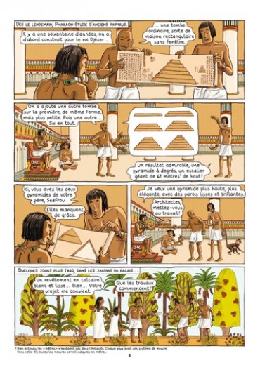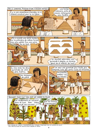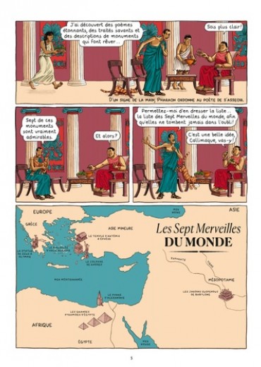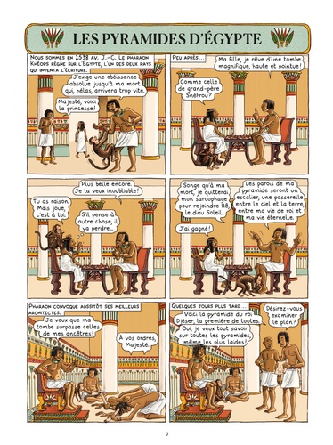 Tout le monde a entendu parler des pyramides d'Egypte, du phare d'Alexandrie, des jardins de Babylone, du Colosse de Rhodes... Cette bande dessinée nous raconte la genèse de leur création et les secrets de leur construction mais aussi les raisons de leur disparition. Un voyage à travers les époques et les civilisations, à la découverte des monarques visionnaires et des milliers d'artisans qui ont façonné ces chefs-d'oeuvre de l'histoire humaine. L'expertise et la science du récit de Viviane Koenig se conjuguent à la précision du dessin d'Emmanuel Olivier pour donner naissance à une bande dessinée... qui fait merveille !