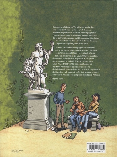 Explorez le château de Versailles et ses jardins, ancienne résidence royale et chef-d'oeuvre emblématique de l'art français. Accompagné de François, Jean-Marc et Jacinthe, plongez au coeur de ce patrimoine unique qui témoigne de L'évolution de l'architecture, des arts et de La vie de cour, depuis ses origines jusqu'à nos jours. Ils nous proposent un voyage dans le temps, retraçant les moments marquants de L'histoire de cet immense château : le relais de chasse de Louis XIII, la vision de Louis XIV avec la galerie des Glaces et tes jardins majestueux. les petits appartements et le Petit Trianon conçus sous Louis XV, le théâtre et le hameau champêtre de Marie-Antoinette, les bouleversements de La Révolution française sous Louis XVI, La présence de Napoléon à Trianon et, enfin, la transformation du château en musée sous l'impulsion de Louis-Philippe. Bonne visite !