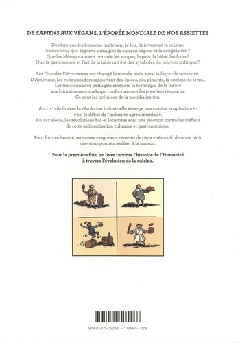 Dès lors que les humains maîtrisent le feu, ils inventent la cuisine. Saviez-vous que Sapiens a imaginé la cuisson vapeur et la congélation ? Que les Mésopotamiens ont créé les soupes, le pain, la bière, les fours ? Que la gastronomie et l'art de la table ont été des symboles du pouvoir politique ? Les Grandes Découvertes ont changé le monde, mais aussi la façon de se nourrir. D'Amérique, les conquistadors rapportent des épices, des piments, la pomme de terre... Les missionnaires portugais amènent la technique de la friture aux lointains samouraïs qui confectionnent les premiers tempuras. Ce sont les prémices de la mondialisation. Au >axe siècle avec la révolution industrielle émerge une cuisine "capitaliste" : c'est le début de l'industrie agroalimentaire. Au XXIe siècle, les révolutions bio et locavores sont une réaction contre les méfaits de cette uniformisation culinaire et gastronomique. Pour finir en beauté, retrouvez vingt-deux recettes de plats cités au fil de notre récit que vous pourrez réaliser à la maison.
