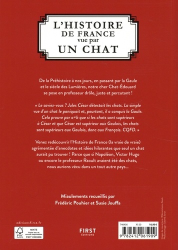 Découvrez Chat-Edouard de la Croquettemolle, premier chat diplômé en Histoire à l'Université de la Sorbonne. " Le saviez-vous ? Jules César détestait les chats. La simple vue d'un chat le paniquait et pourtant il conquit la Gaule. Cela prouve par a +b que si les chats sont supérieurs à César et que César est supérieur au Gaulois, les chats sont donc supérieurs aux Gaulois, donc aux Français. CQFD". De la préhistoire au futur (oui ! ), en passant par la Gaule et le Siècle des Lumières, notre cher Chat-Edouard s'impose comme Professeur d'histoire drôle, juste et percutant !