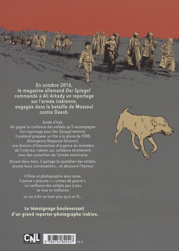En octobre 2016, le magazine allemand Der Spiegel commande à Ali Arkady un reportage sur le début de l'offensive, à Mossoul, contre Daesh. Ali, photojournaliste, prend contact avec des soldats rencontrés quelques mois plus tôt, à Falloujah. Il les rejoint sur la base militaire de Qayyarah, à 90 kilomètres au sud de Mossoul, en Irak. Kurde, Ali est protégé par les hommes qu'il accompagne, et dont il gagne la confiance. Son reportage pour Der Spiegel terminé, il reste avec les soldats, prétendant préparer un film à la gloire de l'ERD (Emergency Response Division), une division d'intervention d'urgence du ministère de l'intérieur irakien. Durant deux mois, il partage le quotidien des soldats, écoute leurs conversations. Et il découvre le pire : exactions contre des civils, viols, tortures... Ali est à bout de nerfs, et au bout de l'enfer. Ses photos et ses films seront publiés et montrés dans le monde entier. Pour ce reportage saisissant, Ali Arkady a reçu, en 2017, le prix Bayeux Calvados-Normandie des correspondants de guerre.