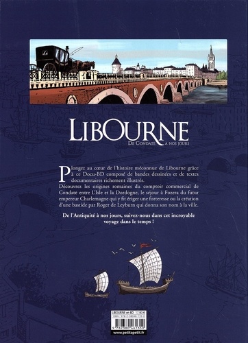 Plongez au coeur de l'histoire méconnue de Libourne grâce à ce Docu-BD composé de bandes dessinées et de textes documentaires richement illustrés. Découvrez les origines romaines du comptoir commercial de Condate entre L'Isle et la Dordogne, le séjour à Fozera du futur empereur Charlemagne qui y fit ériger une forteresse ou la création d'une bastide par Roger de Leyburn qui donna son nom à la ville.