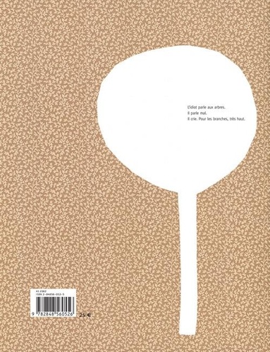 Enfermé dans une pièce tapissée d'un motif végétal, l'idiot s'invente un arbre, puis un éléphant. Il dialogue avec l'"Autre" qui veut le ramener à la raison. Dans la vidéo expérimentale (un film de 10') qui constitue l'autre volet de ce diptyque, l'idiot plante un verger. Toute la magie de l'univers poétique d'Anne Herbauts, cette fois en couleur.