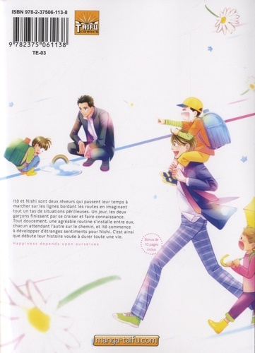 Itô et Nishi sont deux rêveurs qui passent leur temps à marcher sur les lignes bordant les routes en imaginant tout un tas de situations périlleuses. Un jour. les deux garçons finissent par se croiser et faire connaissance. Tout doucement, une agréable routine s'installe entre eux, chacun attendant l'autre sur le chemin, et Itô commence à développer d'étranges sentiments pour Nishi. C'est ainsi que débute leur histoire vouée à durer toute une vie.