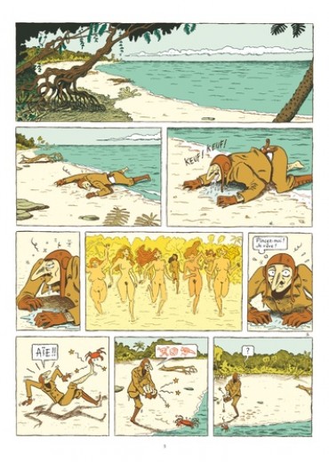 Un conte féministe par le dessinateur de Peau d'Homme. Céleste Bompard est un "coq en l'air ", un as de la voltige. Ses prouesses lui valent un large succès auprès de la gent féminine. Il aligne les conquêtes. Engagé alors que la Grande Guerre éclate, il est chargé de transporter les lettres que les soldats du front écrivent à leurs femmes. Mais lors d'une mission, Céleste est victime d'un tir ennemi et son biplan se crashe sur une île mystérieuse. Obligé de survivre dans cet endroit visiblement désert, il trompe son ennui en lisant les lettres que les poilus destinent à leurs femmes. Un jour, en parcourant les lieux, il découvre un jardin d'Eden entièrement peuplé de femmes ! De véritables amazones, aussi belles que redoutables, qui ne tardent pas à le capturer pour remplacer leur "reproducteur" actuel. Alors qu'il avait l'habitude de mener la danse avec les femmes, voilà que Céleste est devenu leur esclave ! Truculent et féministe, l'ouvrage de Zanzim colorisé par Hubert revient dans une nouvelle édition avec une couverture inédite, toujours dans la collection " 1000 Feuilles ".