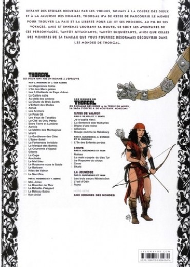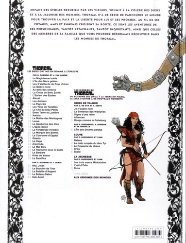 Enfant des étoiles recueilli par les vikings, soumis à la colère des dieux et à la jalousie des hommes, Thorgal n’a de cesse de parcourir le monde pour trouver la paix et la liberté pour lui et ses proches. Au fil de ses voyages, amis et ennemis croisent sa route. Ce sont les aventures de ces personnages, tantôt attachants, tantôt inquiétants, ainsi que celles des membres de sa famille que vous pourrez désormais découvrir dans les mondes de Thorgal.