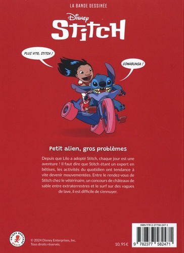 Depuis que Lilo a adopté Stitch, chaque jour est une aventure ! Il faut dire que Stitch étant un expert en bêtises, les activités du quotidien ont tendance à vite devenir mouvementées. Entre le rendez-vous de Stitch chez le vétérinaire, un concours de châteaux de sable entre extraterrestres et le surf sur des vagues de lave, il est difficile de s'ennuyer.